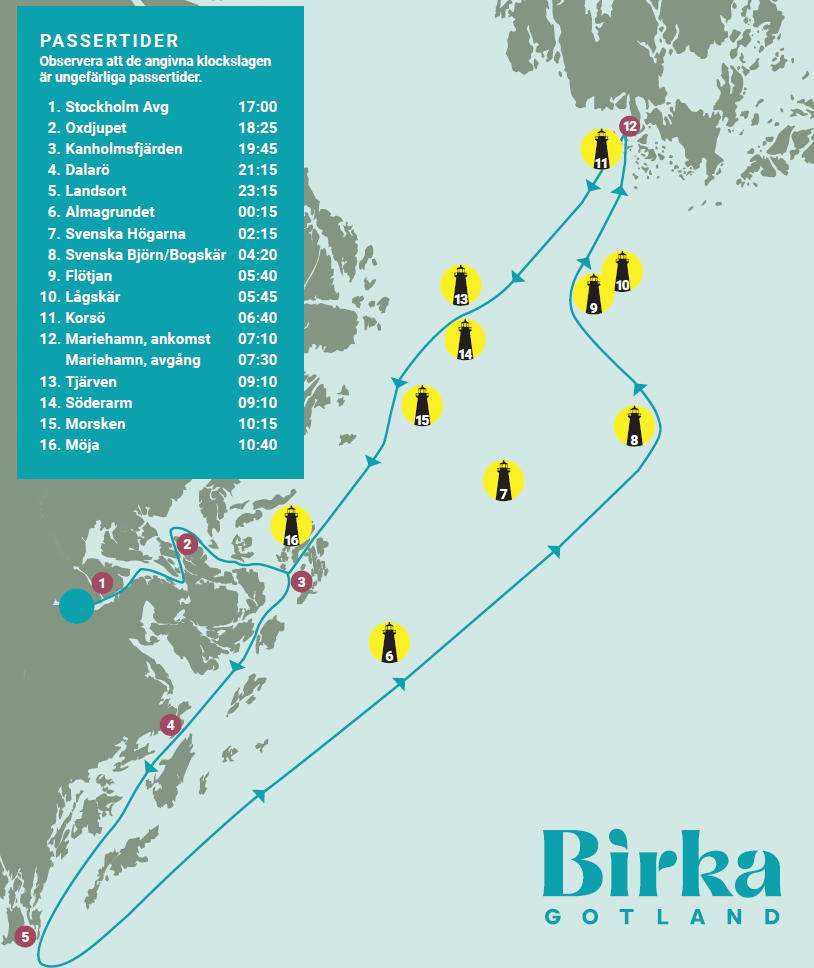 | 26/5 | Birka Gotland | Birka Gotland - Fyr- och Skärgårdskryssning | Mer än 8 | 1 560:- | Boka |